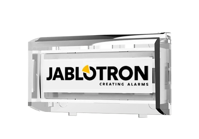 Dørklokke med trådløs forbindelse til alarmanlæg med mulighed for at aktivere Jablatron-anlæggets alarm eller andre af anlæggets funktioner.